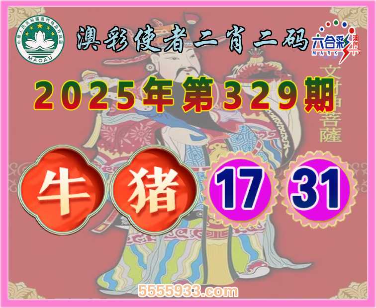 329期:【澳彩使者】 二肖二码【牛猪】【17.31】开:牛17准