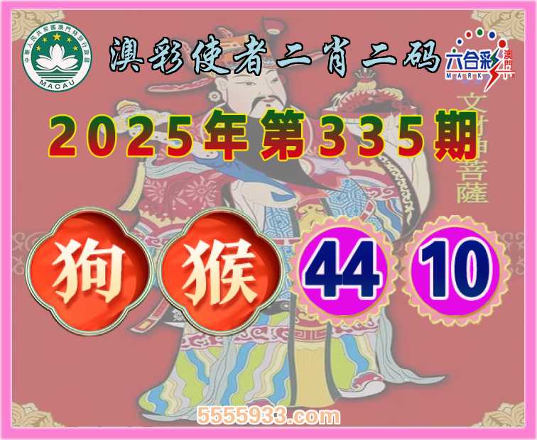 335期:【澳彩使者】 二肖二码【狗猴】【44.10】开:狗44准